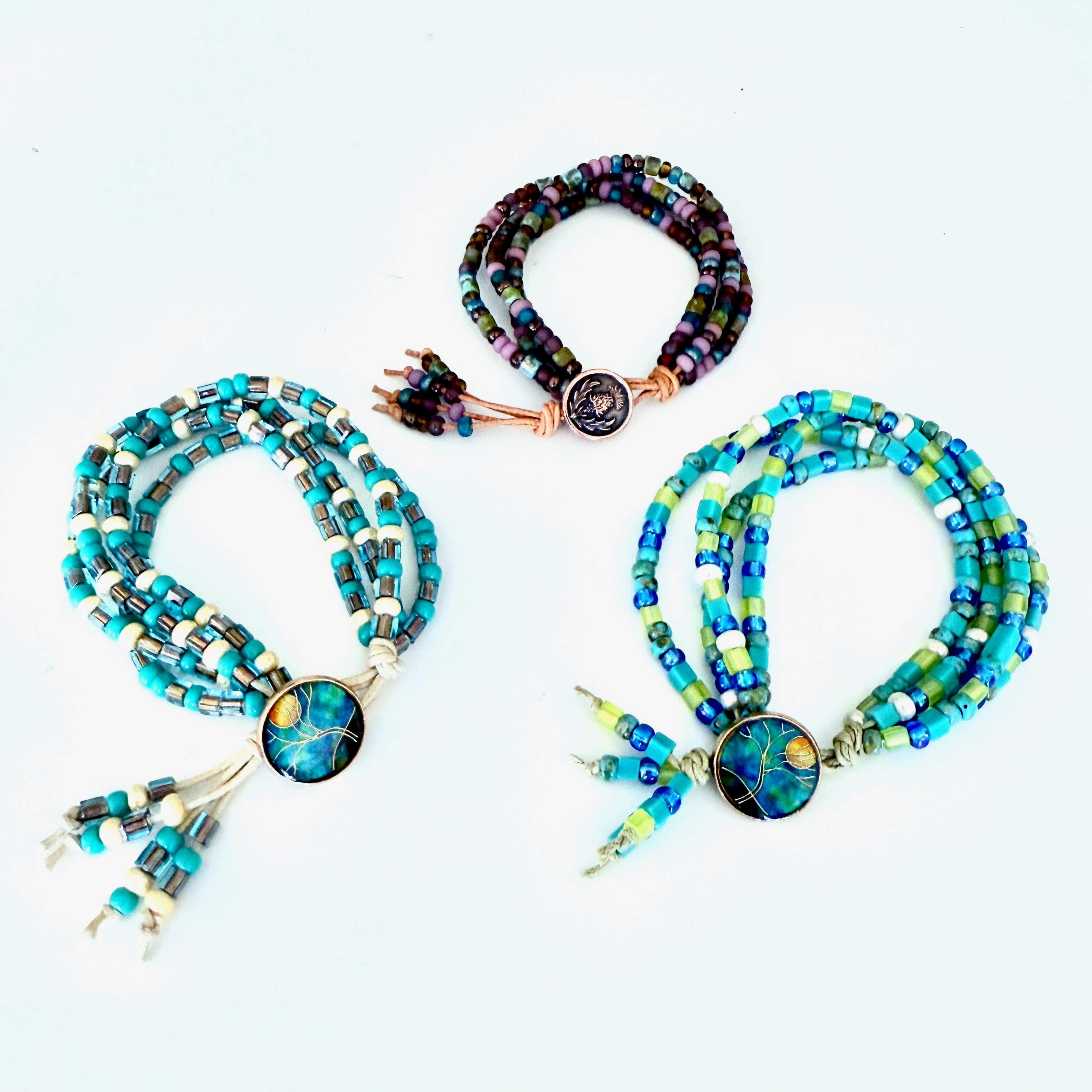 Join us for the Wildflower Bracelet Class, and learn how to make this fun 4 strand bracelet. Use a combination of your favorite 4x4 cube beads, size 6° seed beads and other larger holed beads. We'll finish this bracelet from Caravan with a button clasp. The fee for this 2 hour class is $35.00 plus your supplies.